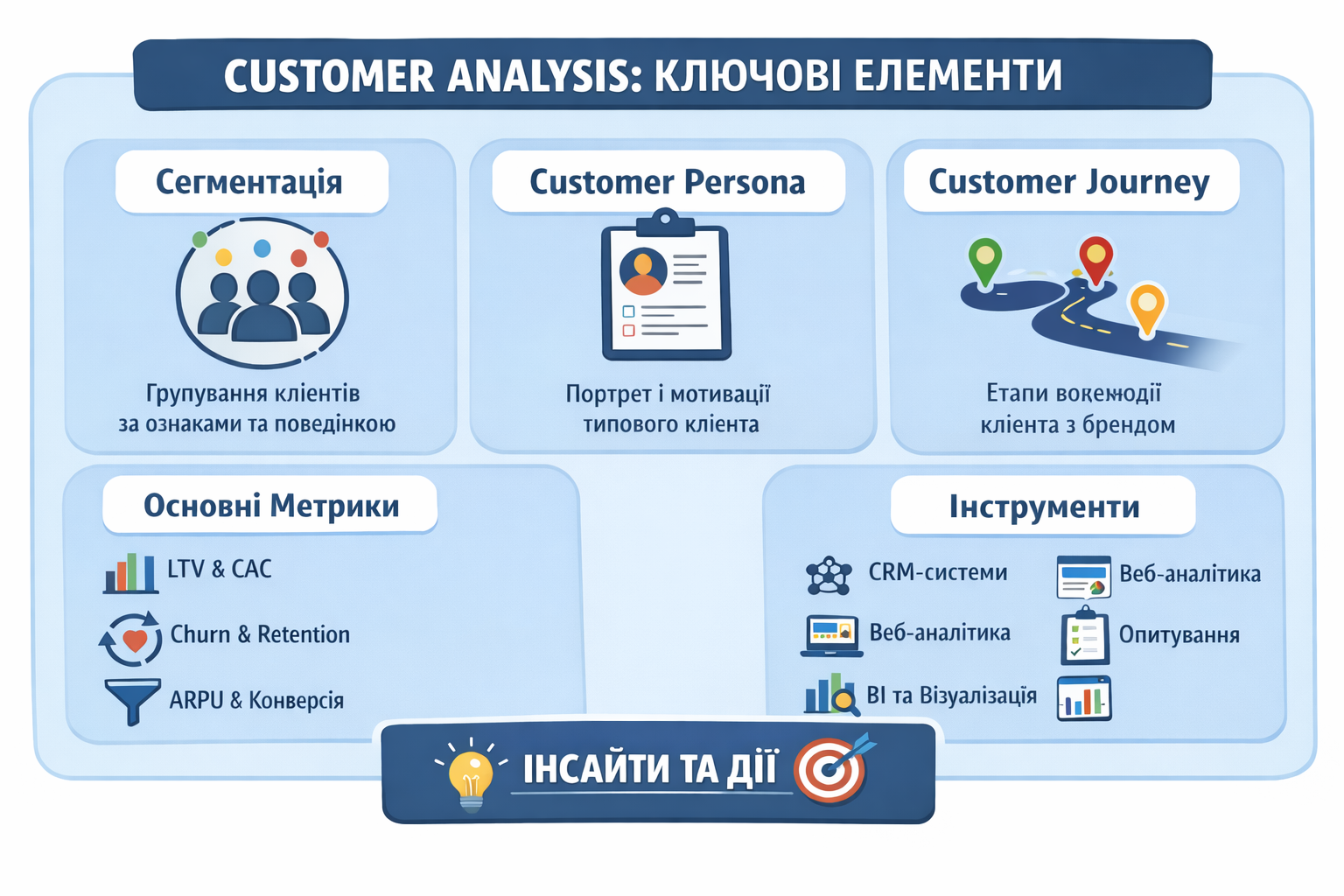 Аналіз клієнтів допомагає перетворювати дані на конкретні дії, підвищувати конверсію, лояльність і прибутковість.
